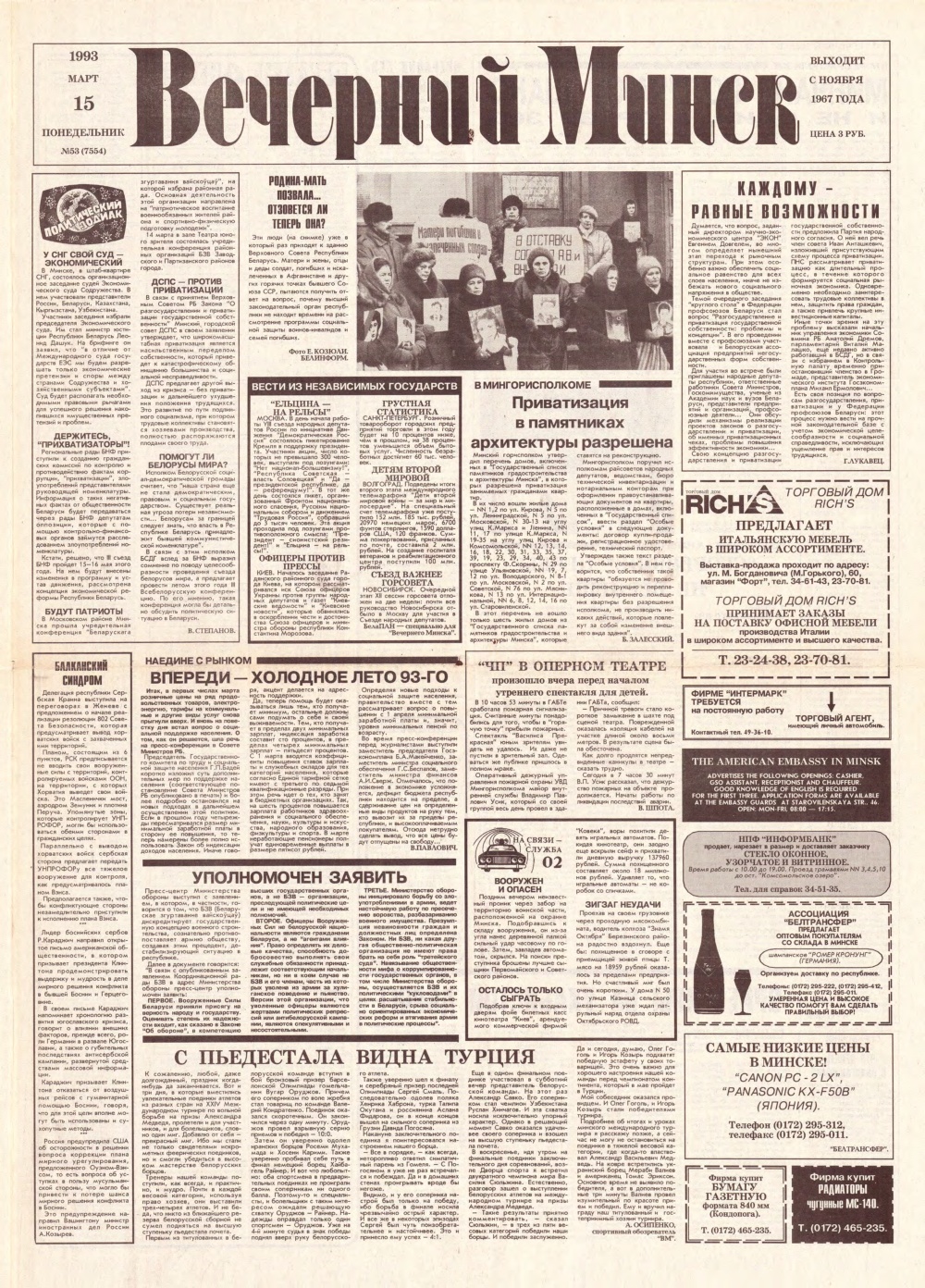Вечерний Минск, 53 (7554) 1993