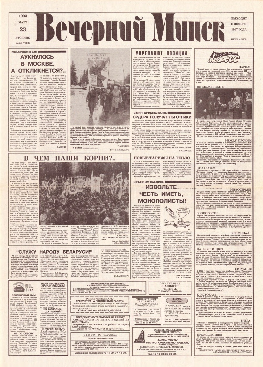Вечерний Минск, 59 (7560) 1993