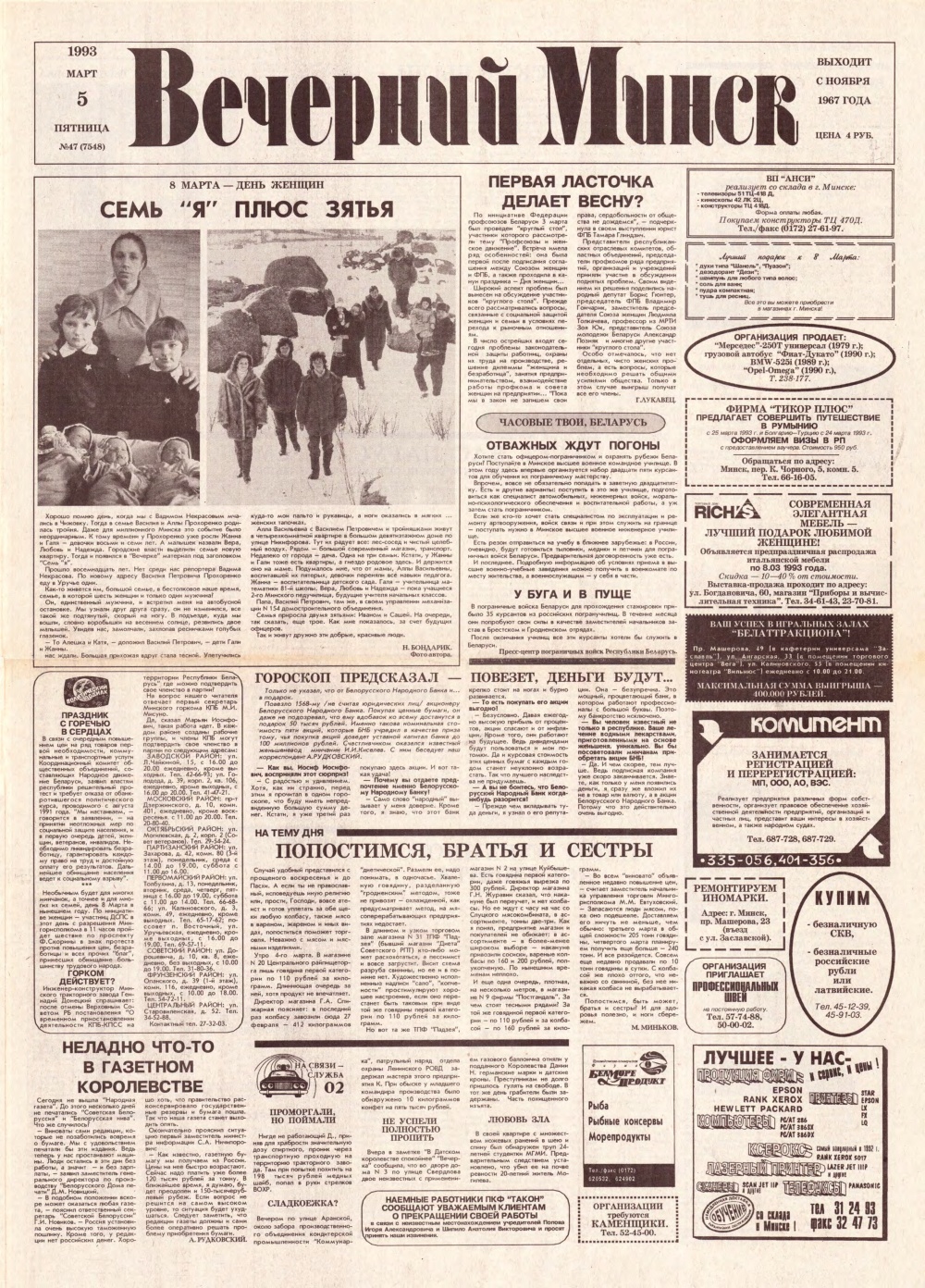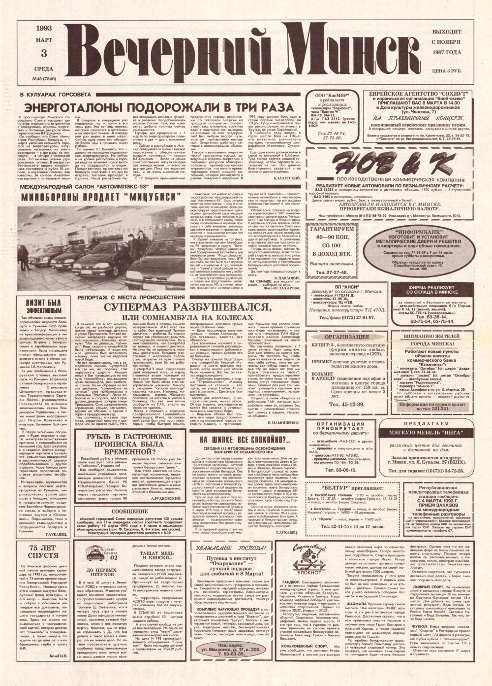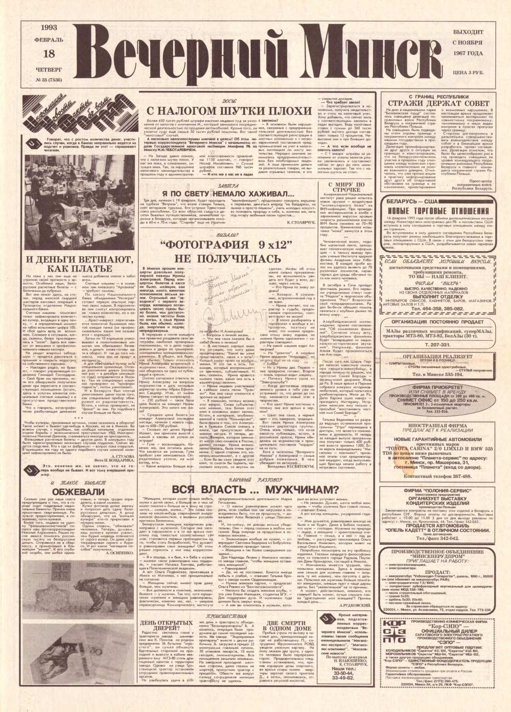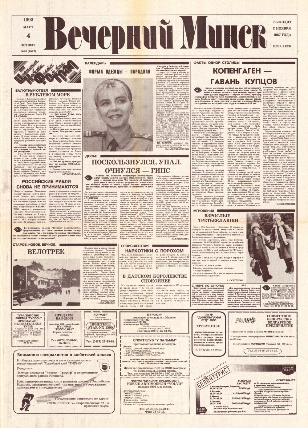 «Вечерний Минск» — выходит з ноября 1967 года. Учредитель: трудовой коллектив редакции газеты «Вечерний Минск». Газета издается на русском и белорусском языках, выходит 5 раз в неделю, кроме субботы и воскресенья — 250 раз в году. Болей »