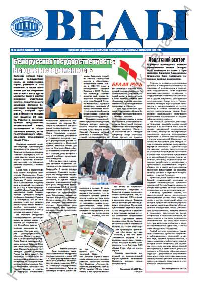 Газета «Веды» — еженедельное научное информационно-аналитическое издание, учредителями которого являются Национальная академия наук Беларуси и Государственный комитет по науке и технологиям Республики Беларусь. Это единственная газета в республике, целиком и полностью посвященная отечественной науке (академической, вузовской, отраслевой), деятельности научных коллективов, организаций, учреждений образования. Издание оперативно рассказыв... Болей »