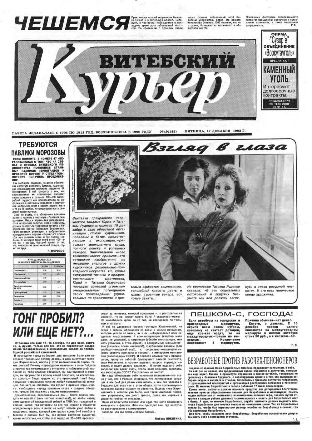 «Витебский курьер» — газета издавалась с 1906 па 1913 год. Возобновлена 9 июня 1990 года. Выходит по вторникам и пятницам. Редакция знакомится с письмами читателей, не вступая в переписку. Рукописи не рецензируются и не возвращаются. Więcej »