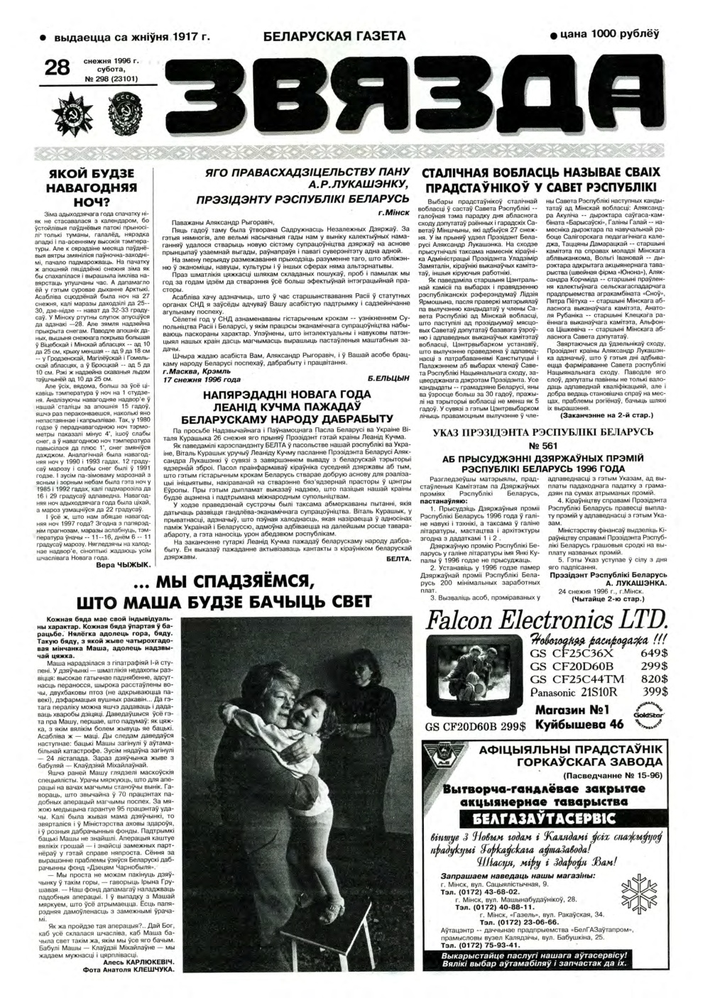 «Звязда» — орган Цэнтральнага Камітэта Камуністычнай партыі Беларусі, Вярхоўнага Савета і Савета Міністраў Беларускай ССР. Выходзіць 250 разоў на год. Аўтары апублікаваных матэрыялаў нясуць адказнасць за падбор і дакладнасць фактаў. Іх меркаванні неабавязкова адлюстроўваюць пункт гледжання рэдакцыі. Болей »