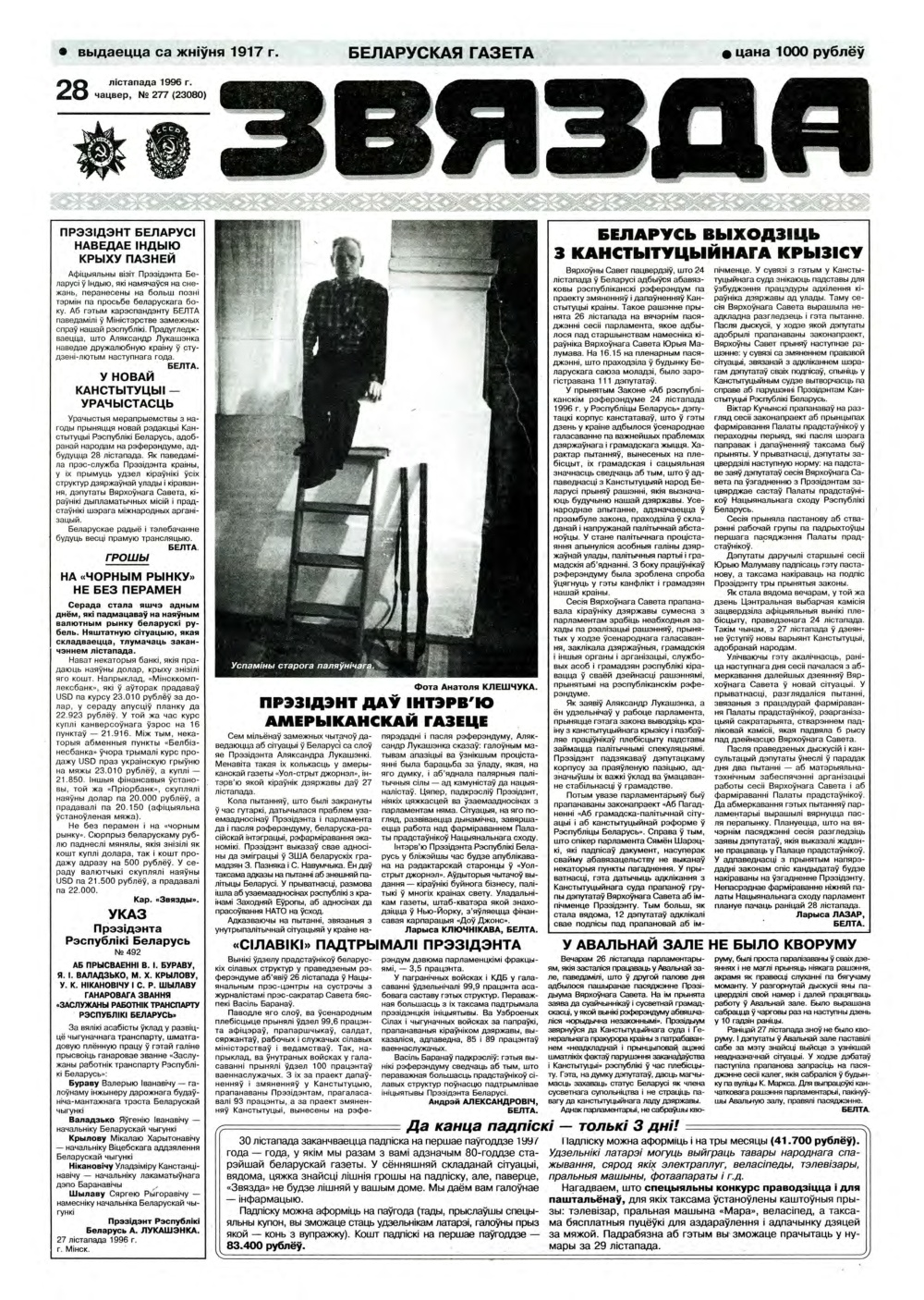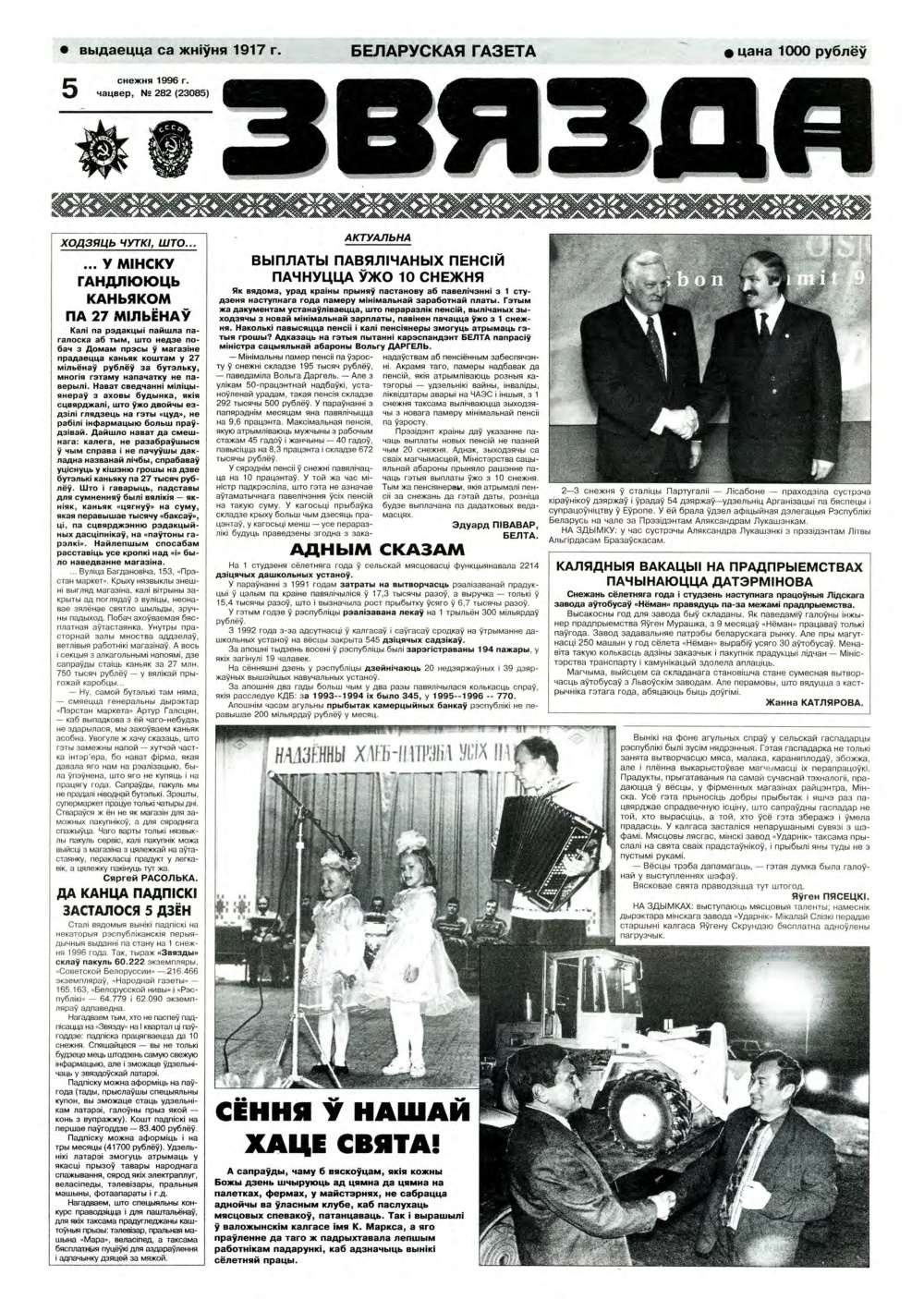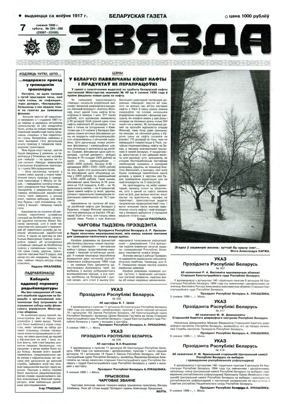 «Звязда» — орган Цэнтральнага Камітэта Камуністычнай партыі Беларусі, Вярхоўнага Савета і Савета Міністраў Беларускай ССР. Выходзіць 250 разоў на год. Аўтары апублікаваных матэрыялаў нясуць адказнасць за падбор і дакладнасць фактаў. Іх меркаванні неабавязкова адлюстроўваюць пункт гледжання рэдакцыі. Болей »